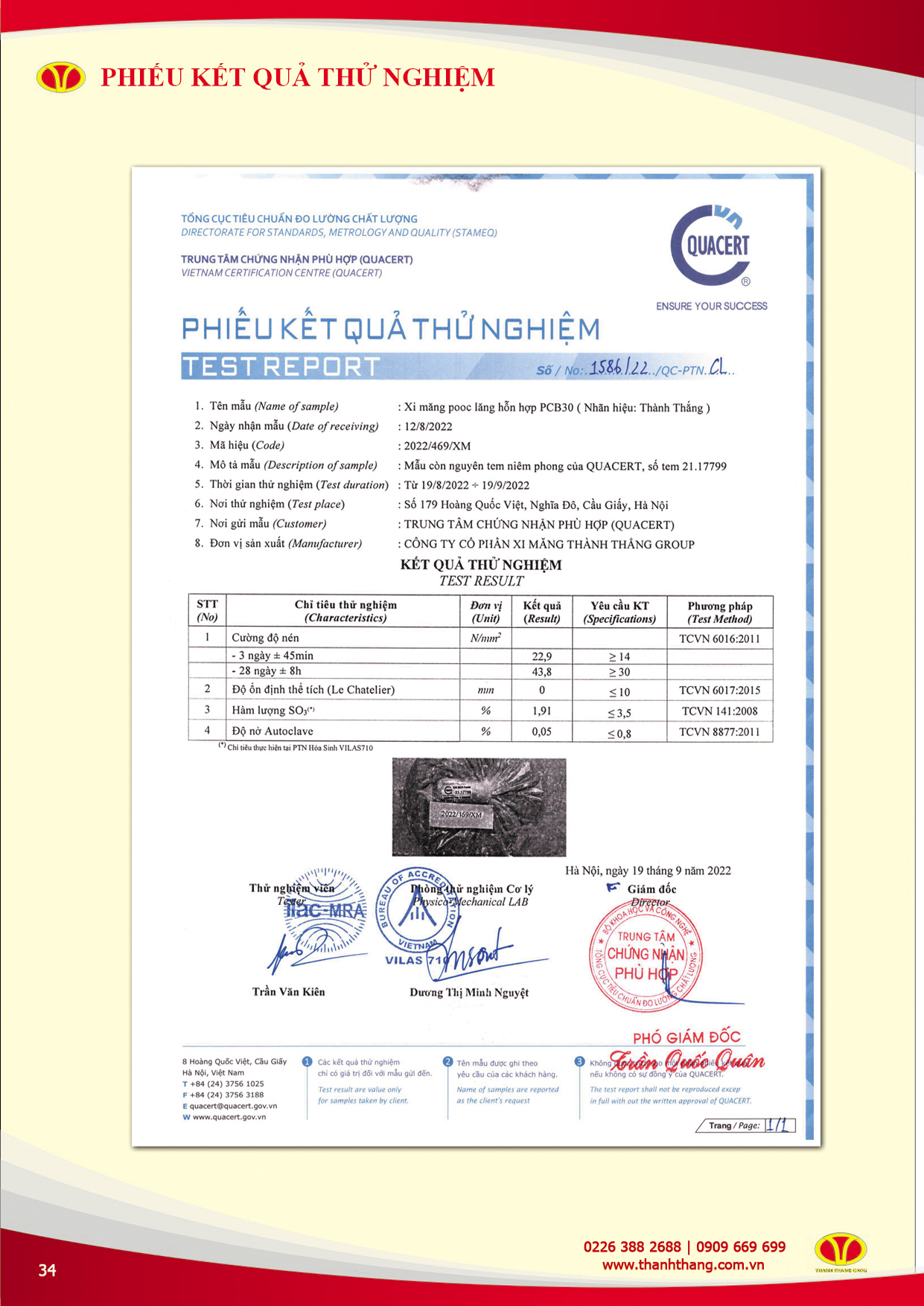 CHỨNG NHẬN CHẤT LƯỢNG