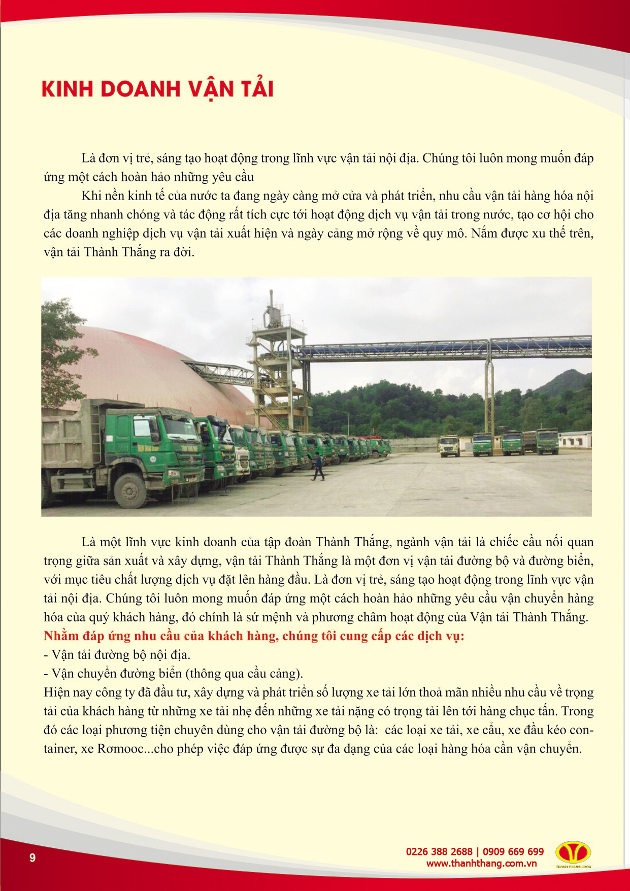 Đối với nước ta hiện nay, kinh tế hàng hải nói chung và cầu cảng nói riêng luôn đóng vai trò quan trọng trong sự nghiệp xây dựng đất nước. Kinh doanh cầu cảng (port) là một lĩnh vực kinh doanh của Tập đoàn Thành Thắng. Mục tiêu chính là kết hợp, thống nhất với các