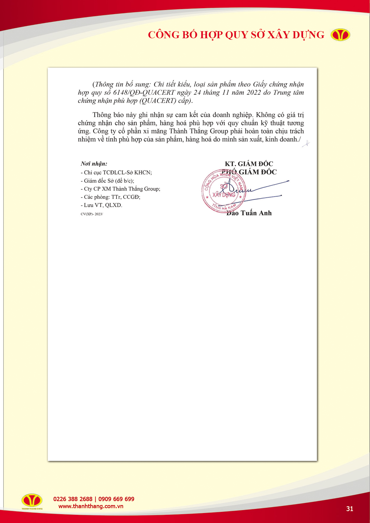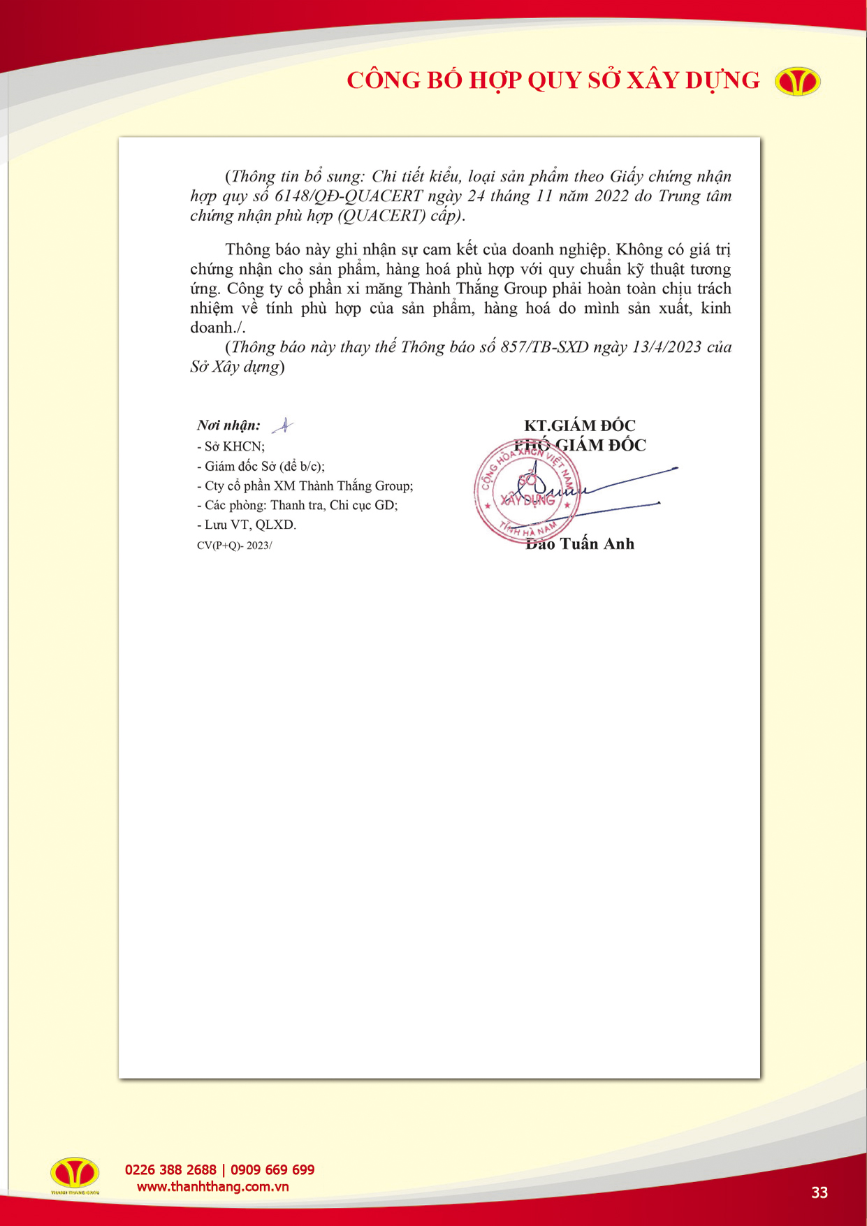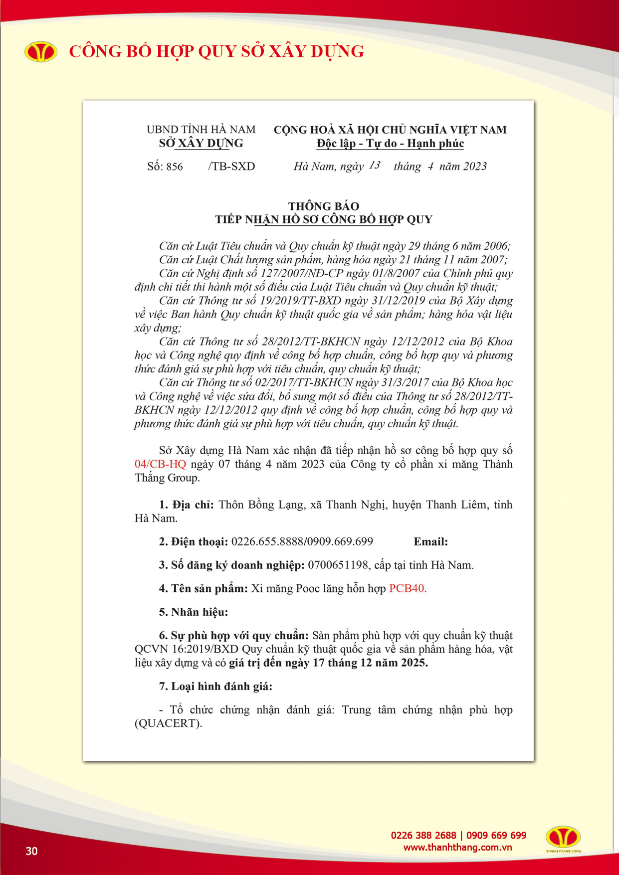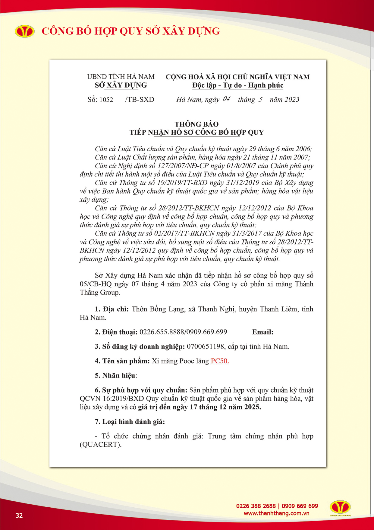 Thông báo tiếp nhận hợp quy Sở Xây Dựng Posted on 19 Tháng mười một, 20237 Tháng 12, 2023 by bangit Giấy chứng nhận ISO Các kết quả thử nghiệm