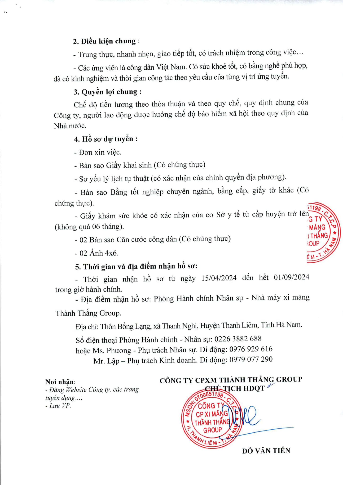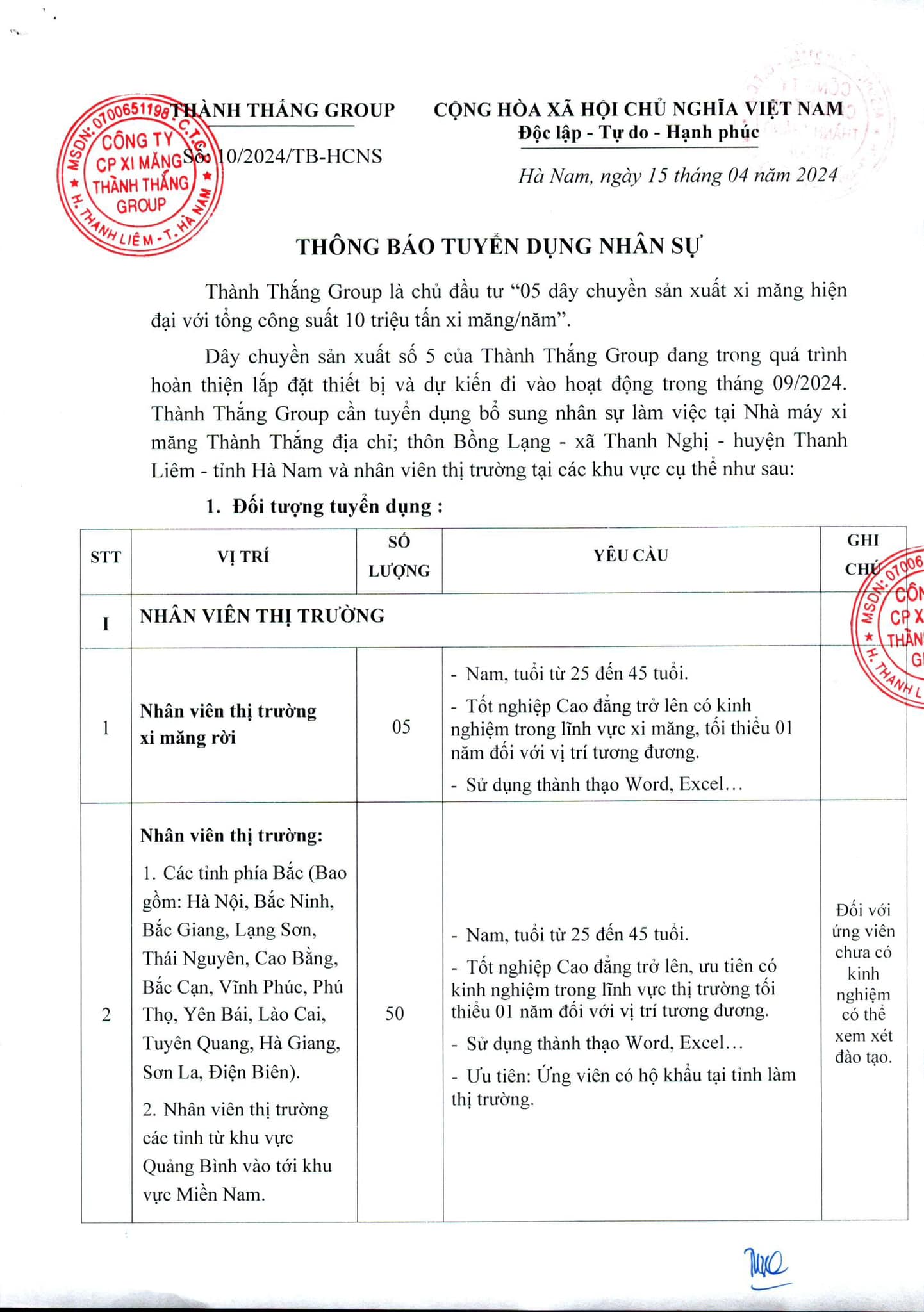 Thông báo tuyển dụng nhân sự cho dây chuyền sản xuất số 4 & 5 Posted on 22 Tháng 4, 202422 Tháng 4, 2024 by bangit Thông báo Tuyển dụng Nhân sự Tháng 3 – 2024 . Xi măng bao PCB30 Thịnh Vượng