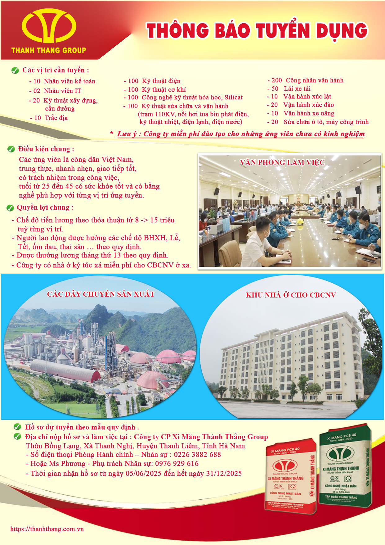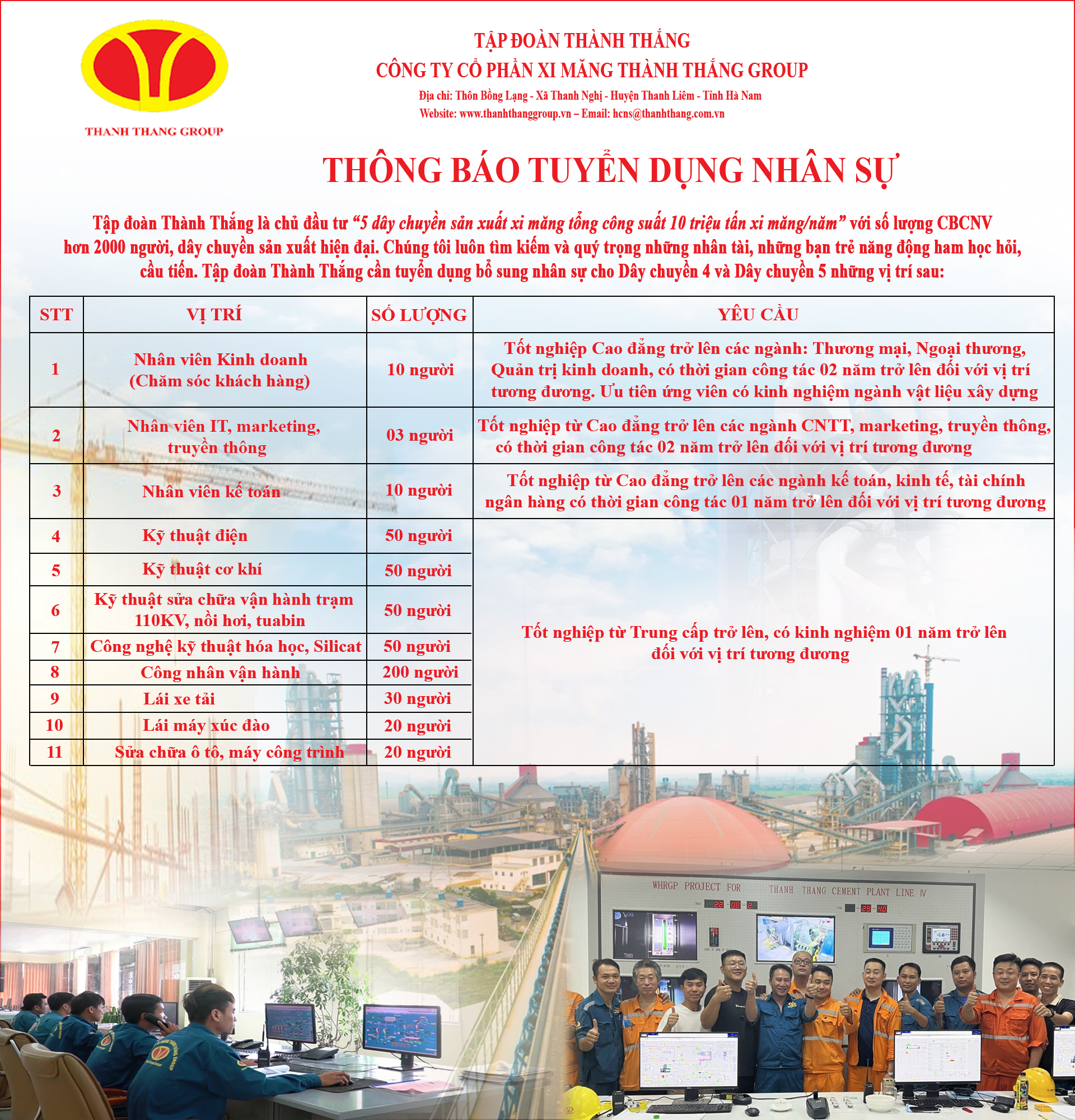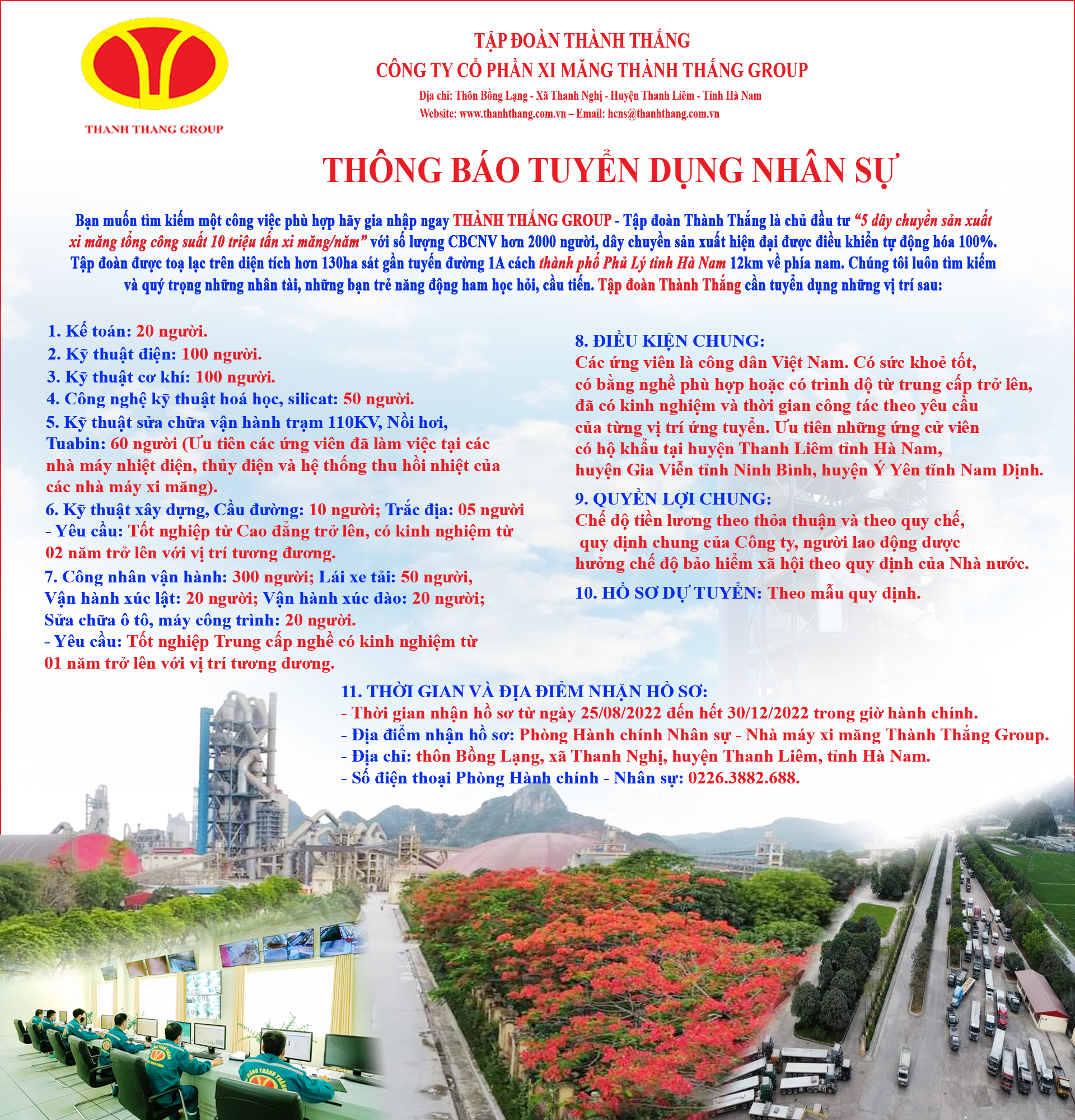 Tập đoàn Thành Thắng là chủ đầu tư “5 dây chuyền sản xuất xi măng tổng công suất 10 triệu tấn xi măng/năm” với lượng CBCNV hơn 2000 người, dây chuyền sản xuất hiện đại được điều khiển tự động hóa 100%. Tập đoàn được tọa lạc trên diện tích hơn 130ha sát gần tuyến đường 1A cách thành phố Phú Lý tỉnh Hà Nam 12km về phía nam, cạnh sông Đáy chảy thông ra biển.