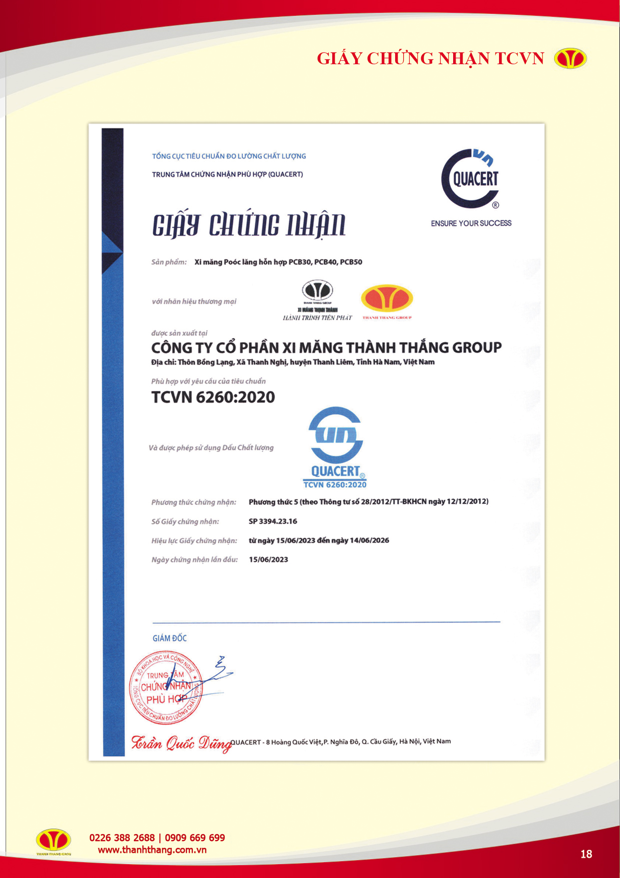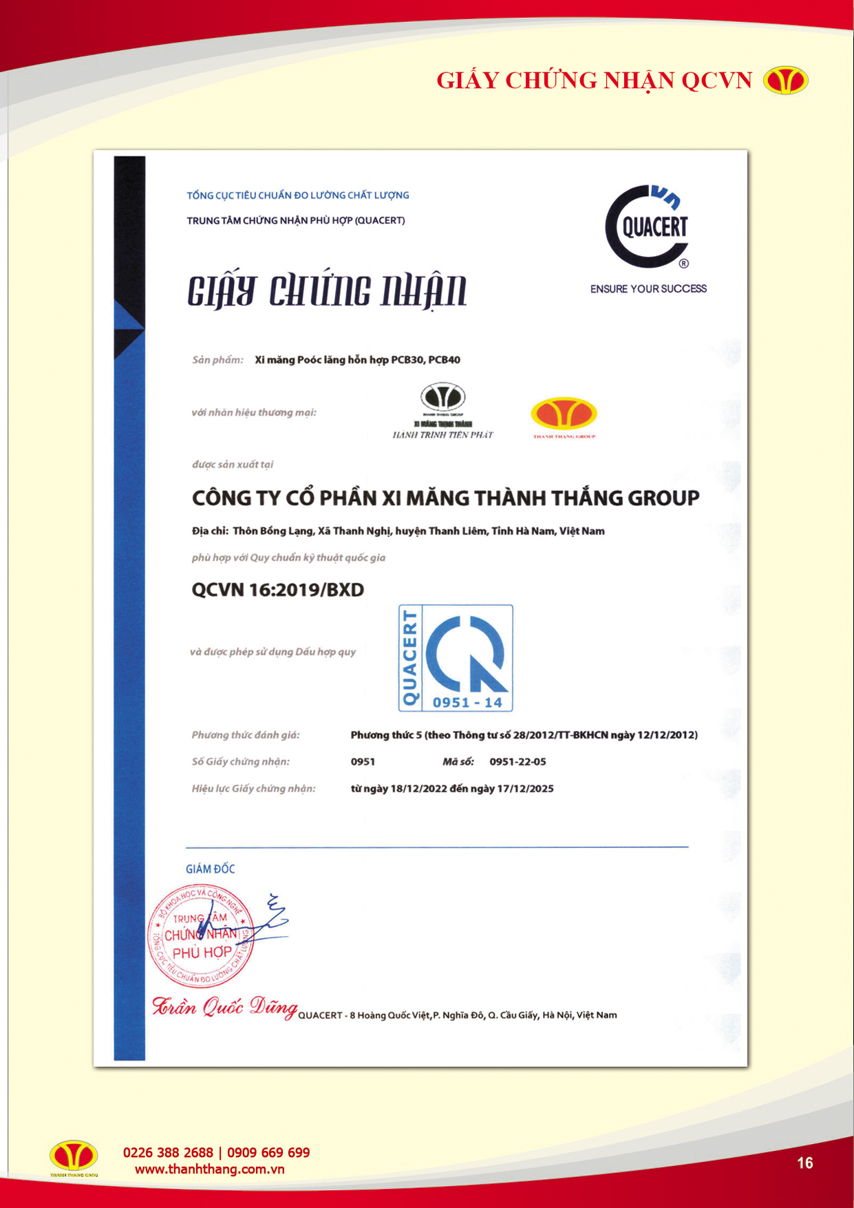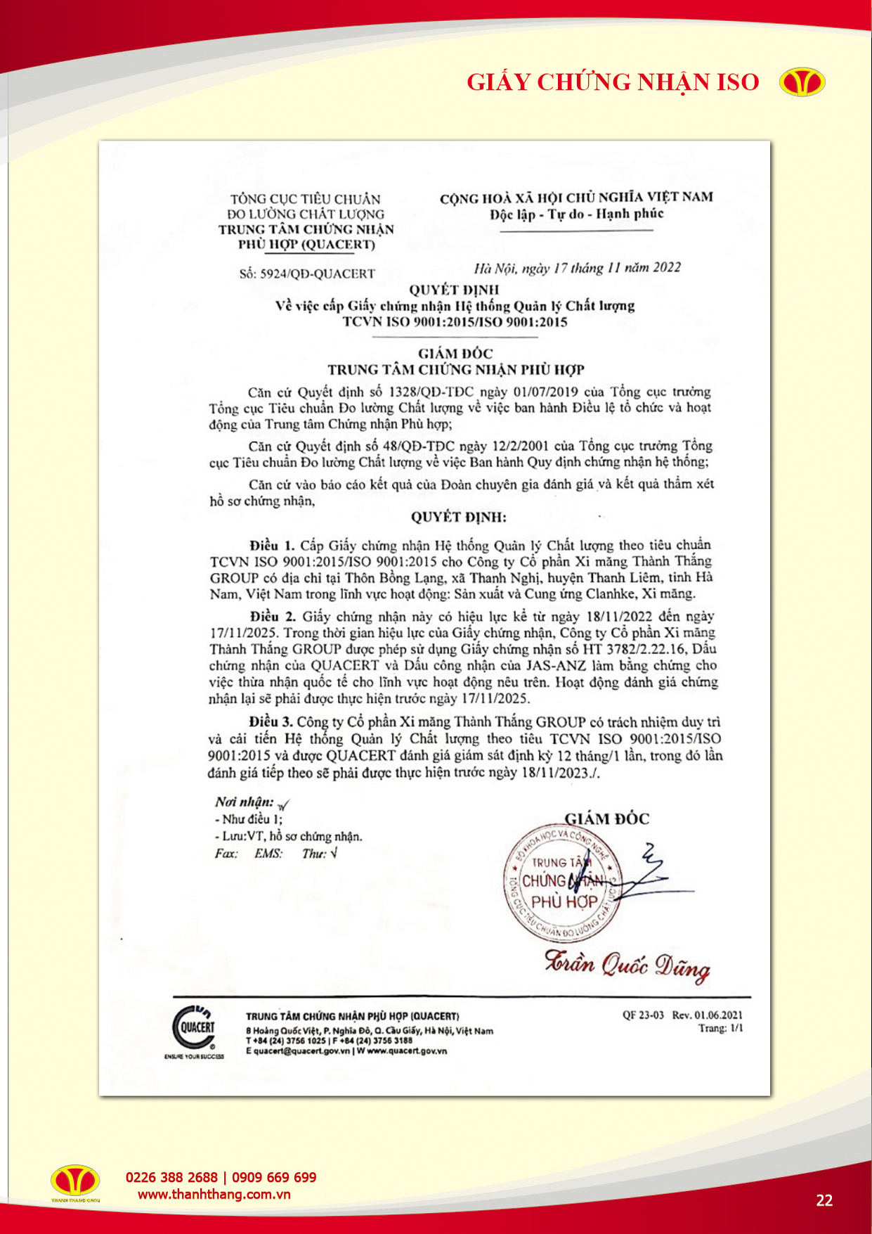 CHỨNG NHẬN CHẤT LƯỢNG